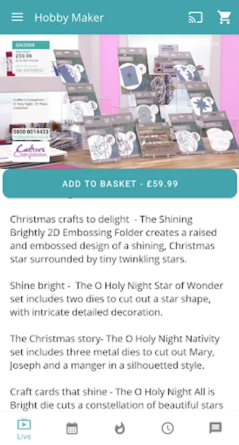 The Hobby Maker app is the perfect companion to our Hobby Maker TV channel. Tune into live shows (and catch up on shows you may have missed!), message the studio and get great access to all of our daily products as they are featured.