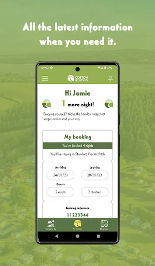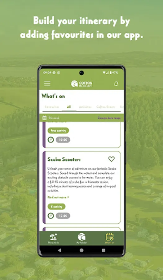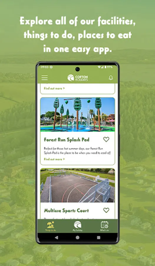 Our app allows you to plan your stay with us and build your own personal itinerary. Simply view our facilities and activities in the app and add them to your favourites. If you are looking to fill you days with adventure, take a daring leap through our tree top high ropes course or let loose in one of our playgrounds. For those looking to relax and unwind, our heated indoor swimming pool with sauna and steam rooms is the perfect place to kick back.