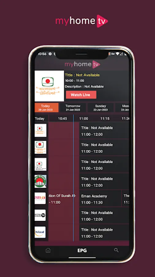 Download the Official Myhometv APP and start watch Live Channels at your Hand.