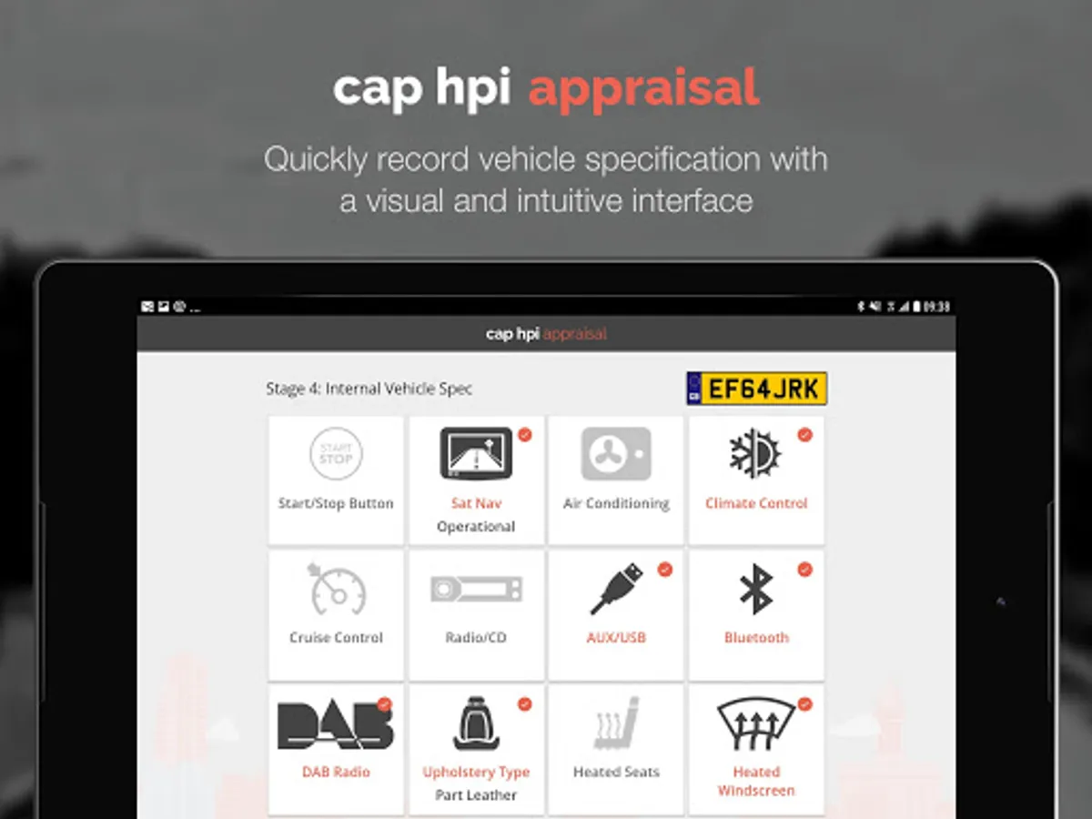 • Access to cap hpi data and grading to support the final vehicle valuation.