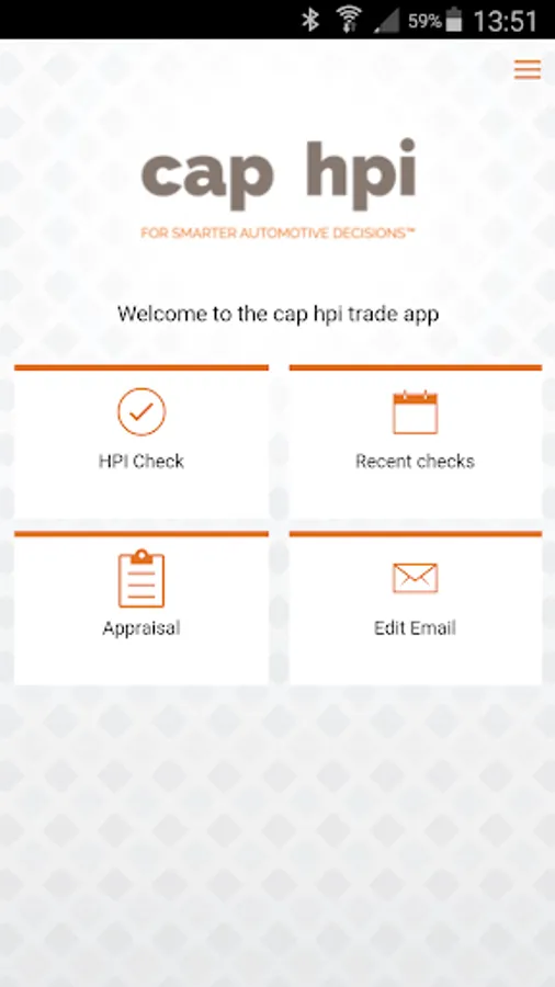 The cap hpi Trade app allows you, our trade customers, to run quick efficient HPI Checks and HPI Vehicle ID Checks while on the move - anytime, anywhere. It’s simple to use and has clear easy to read results, all you need to do is enter your current login details and you’re away. As with running a standard HPI Check you can add options like CAP, Market Values or Glass’s valuations and NMR Checks, and if relevant to your account you will still get the HPI Data Warranty. All your checks will be added to HPI History online, you also get the option of addition SMMT data and all your certificates emailed directly to you.
