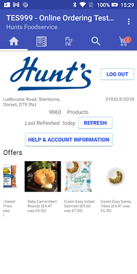 Ordering app for the Hunt's Food Group..