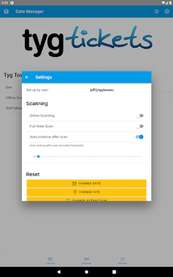 Tyg Gate Manager allows event organisers using the Tyg Tickets platform to quickly scan tickets and manage their event entrance points.