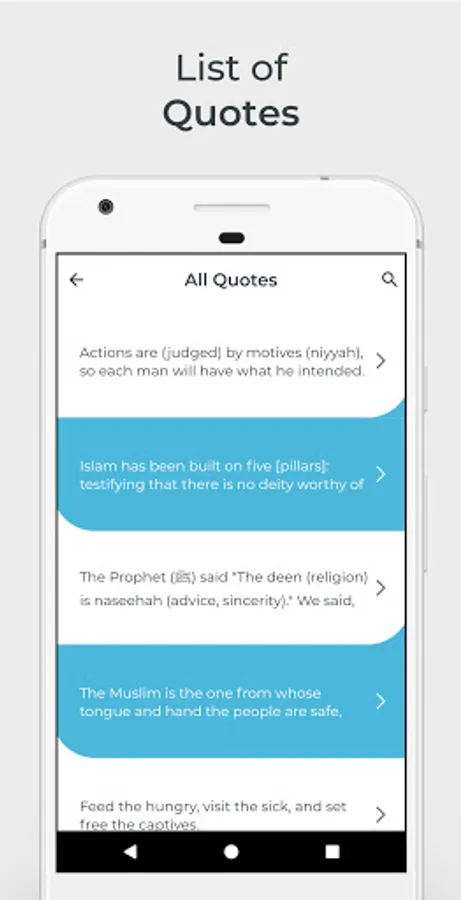 Prophetic Sayings is an app dedicated to spreading the wise sayings of the Prophet Muhammed. Every day a different quote is displayed to inspire and motivate the user. The sources for each of the displayed hadith [prophetic saying] are shown below each quote.