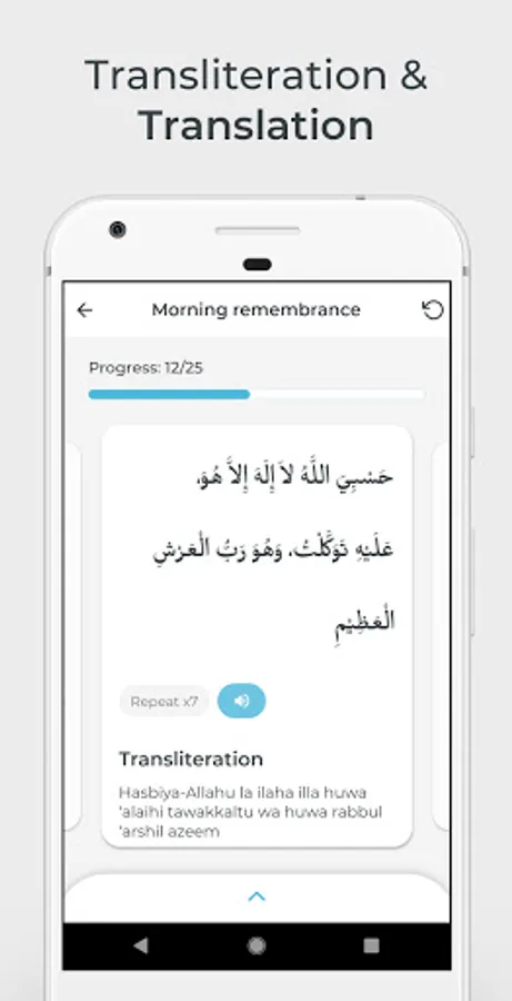 Complete your daily morning and evening adhkaar, with an sleek UI containing the Arabic, translation and transliteration.