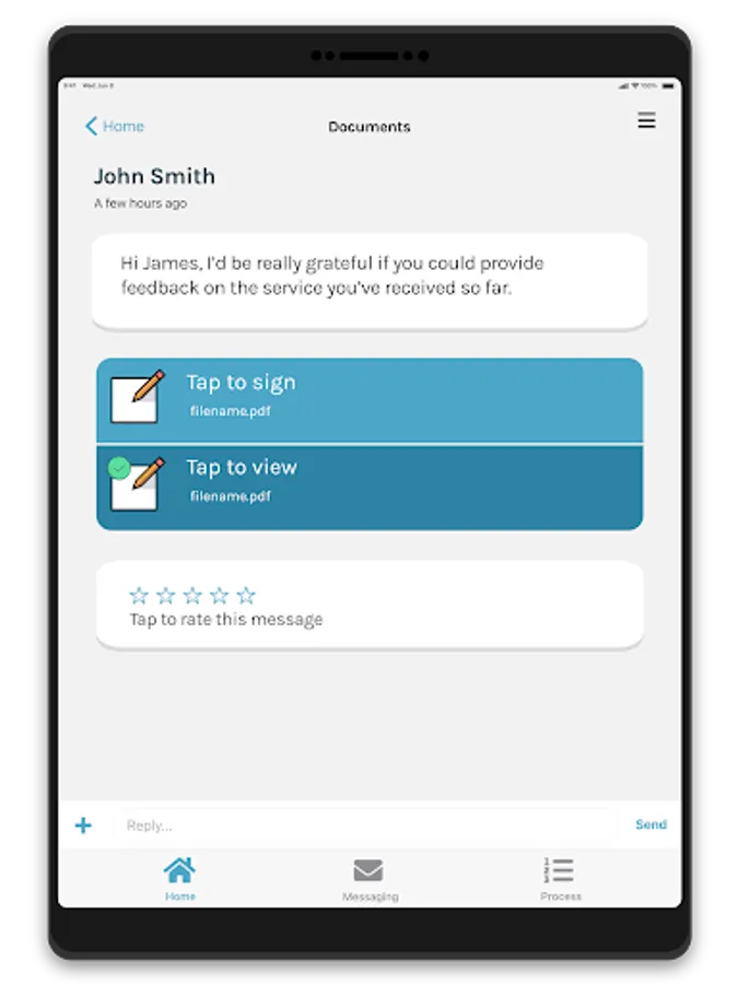 •Send messages and photos direct to your fee earner’s inbox (without needing to provide a reference or even a name)