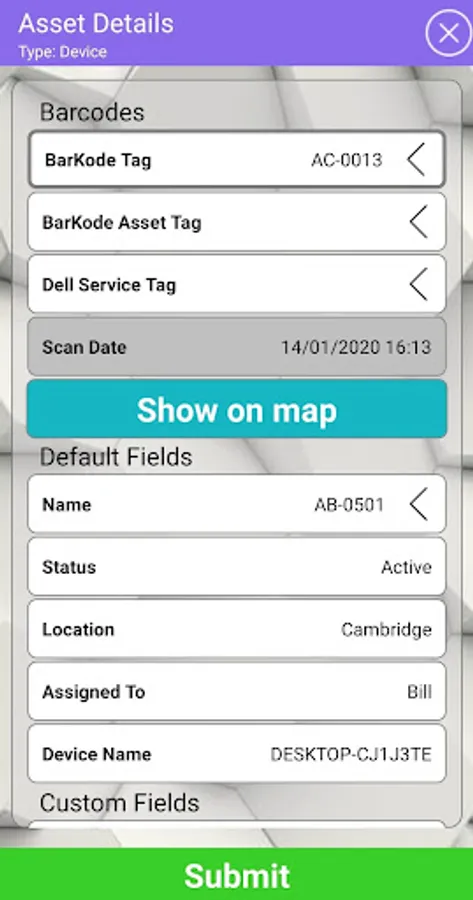 The BarKode App has been designed to allow KACE customers to scan their Assets and update any field they have created for their Asset Types.