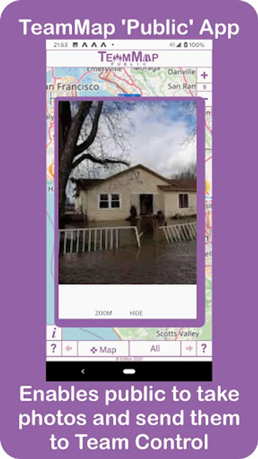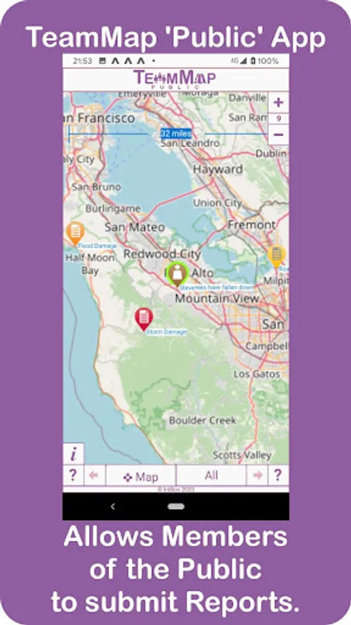 The TeamMap Public app allows reports from the public to be gathered so that they can be used by full members of the TeamMap team carrying out their tasks using the TeamMap app.