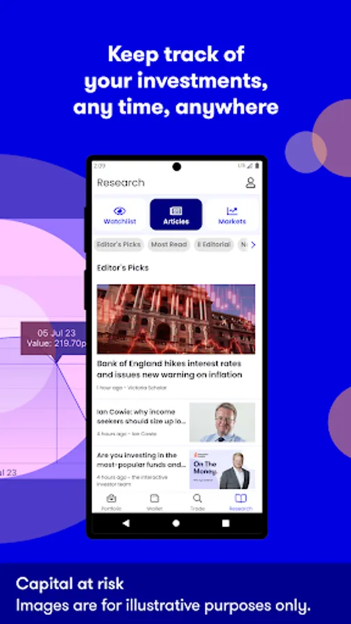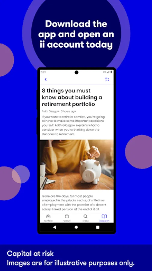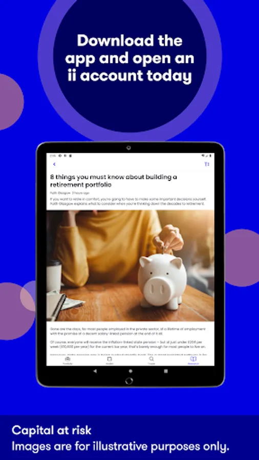 Manage your investments wherever you are with the ii app. Trade shares and stocks uk and benefit from a broad range of investments options. Choose the right account for you, whether is an isa, pension or saving money account - you can find the right options with ii.