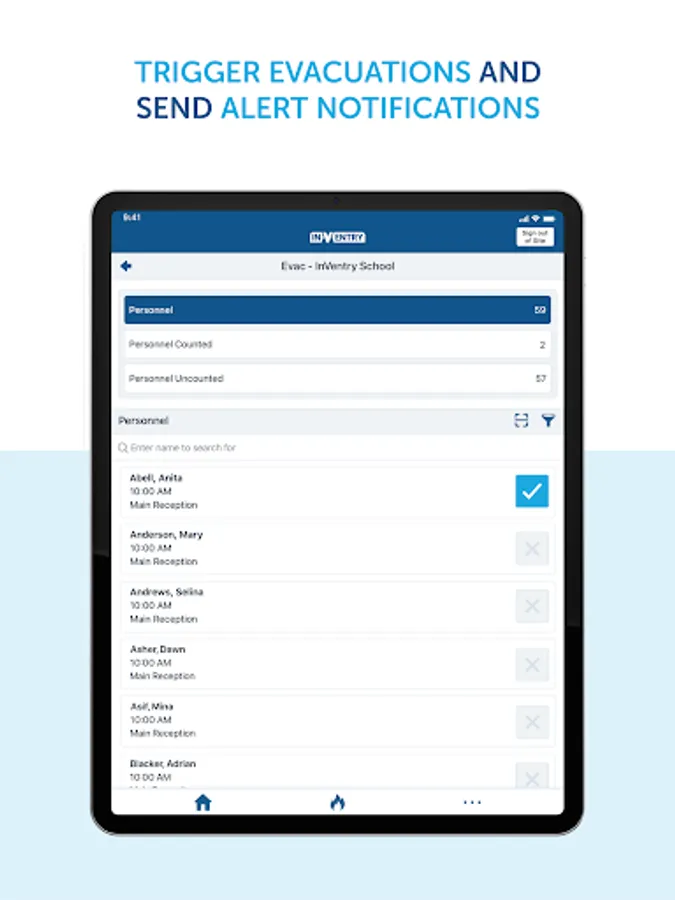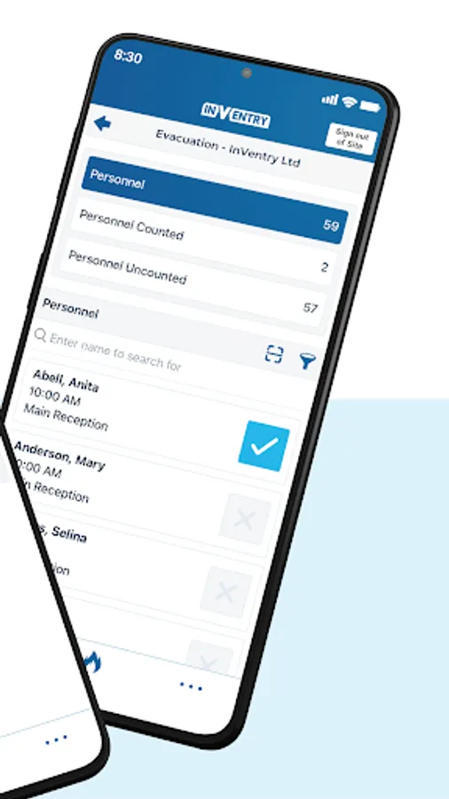 The evacuation tool is used to ensure that everyone is accounted for in case of an emergency. From the app, organisations can access a real-time copy of everyone who is onsite, trigger site-wide evacuations and account for all signed-in people across multiple muster points.