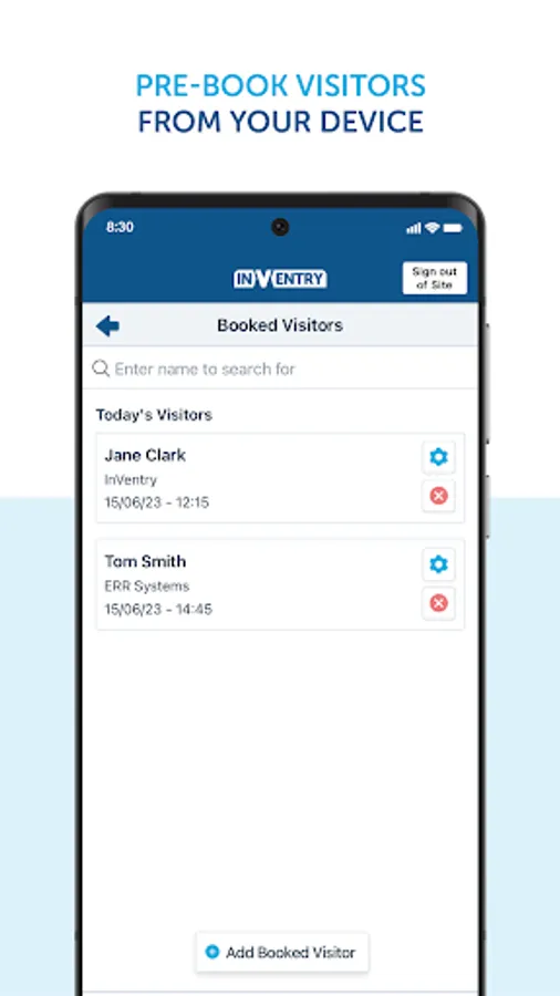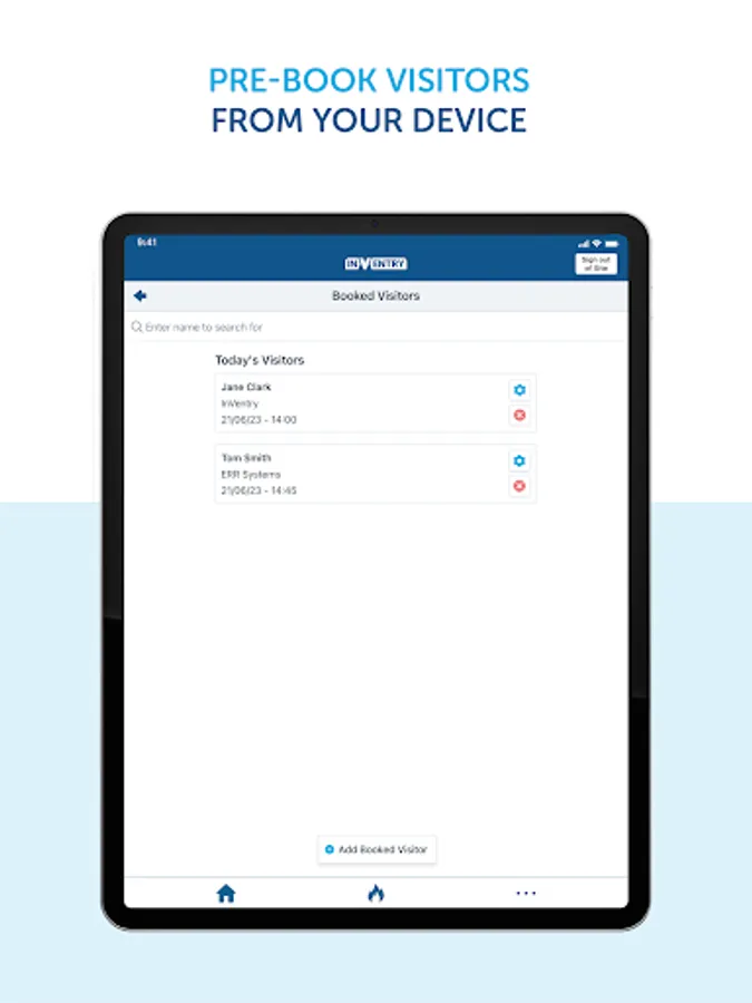Within the app, users can quickly pre-book their own visitors as well as see what visitors they have booked in for that day. When a new visitor is added via the app it also adds them to the organisations main InVentry system to speed up the sign in process when they arrive.