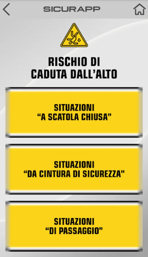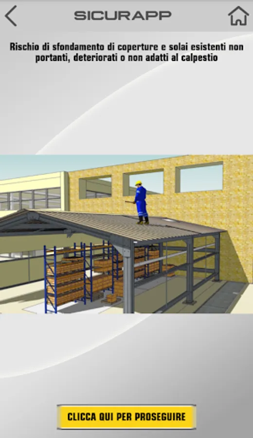 2- "containers" dedicated to each risk area among those typical of construction sites and which statistically cause the greatest number of serious accidents. The first container is dedicated to the "risk of falling from above" and collects the typical site situations in which this risk is present, providing information, procedures and checklists to be used before executing the work, to avoid falls from high and protect properly. Soon, additional containers will be added for each specific risk area.