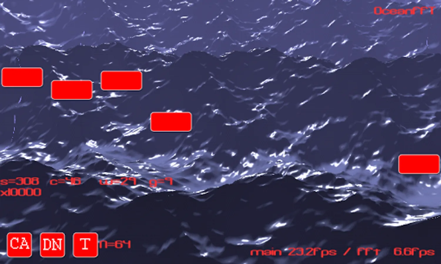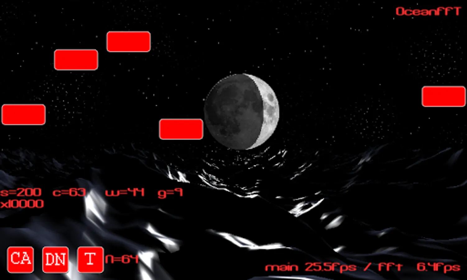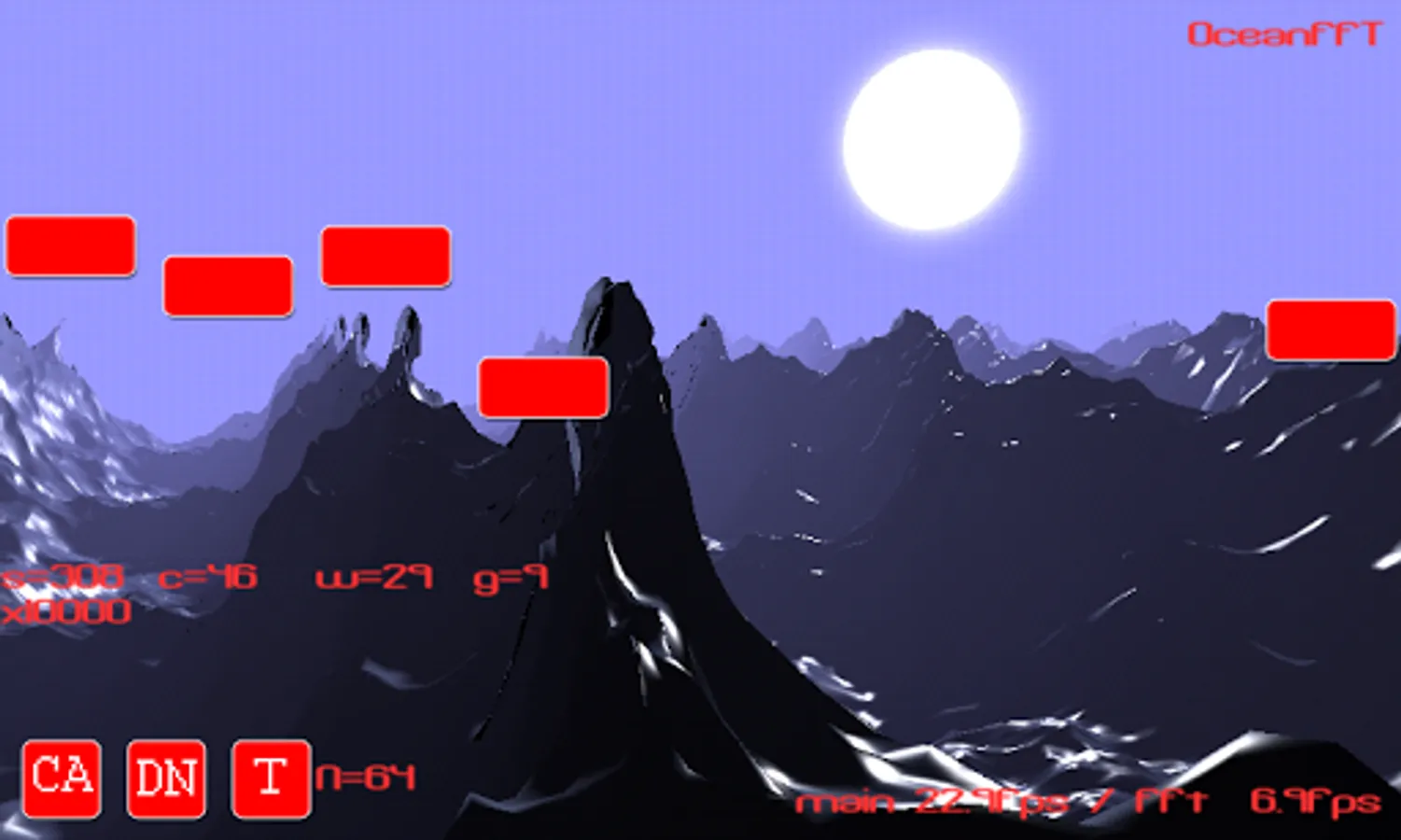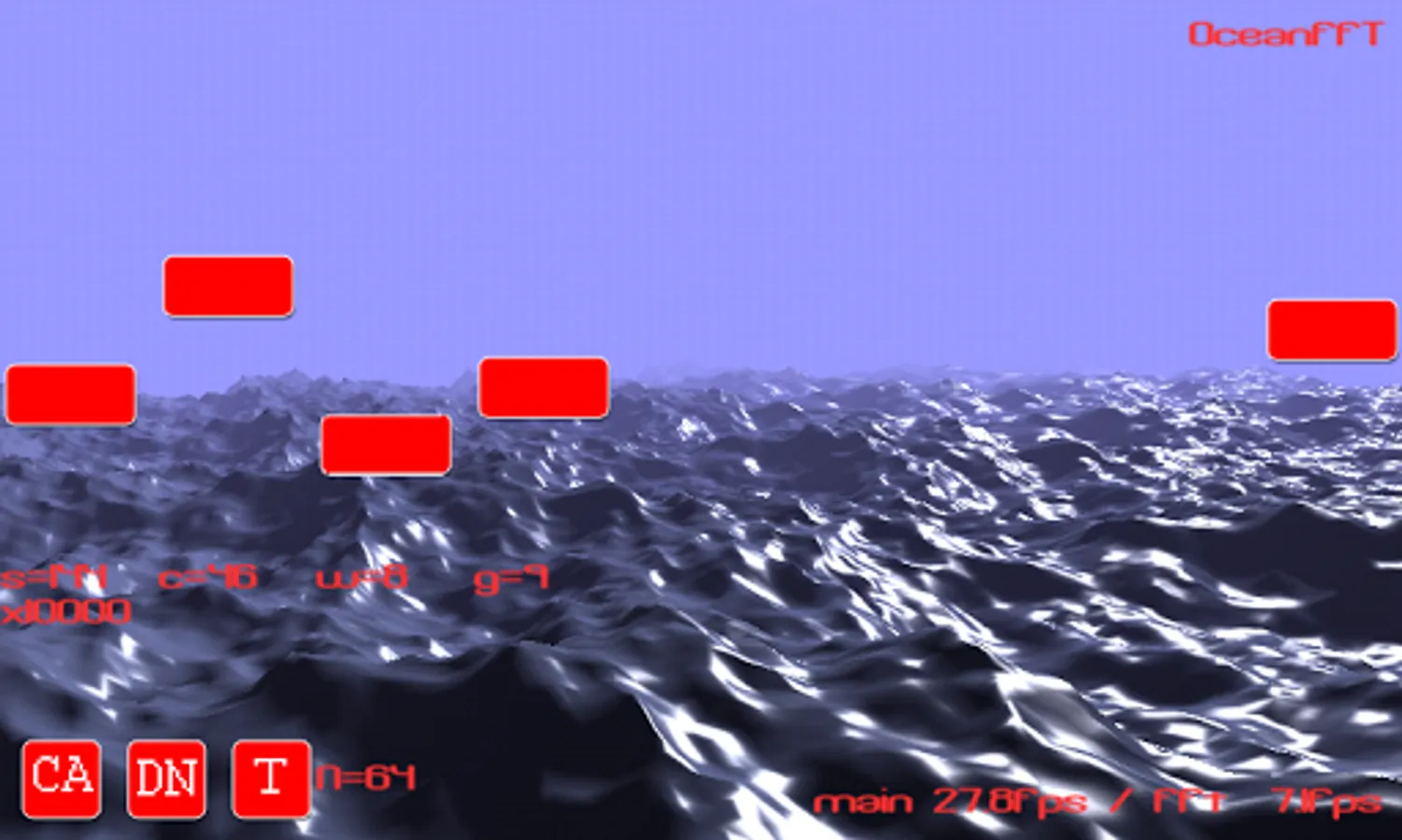This is a DEMO app showing a Java / Android implementation of the FFT process for simulating a moving ocean surface, as per Keith Lantzs work at http://www.keithlantz.net.