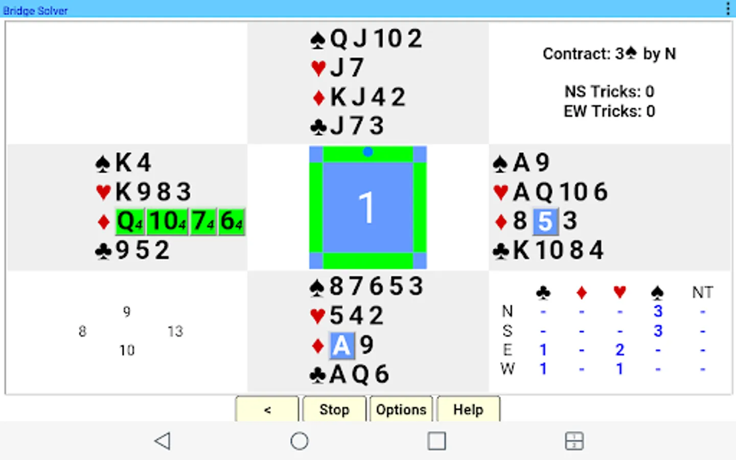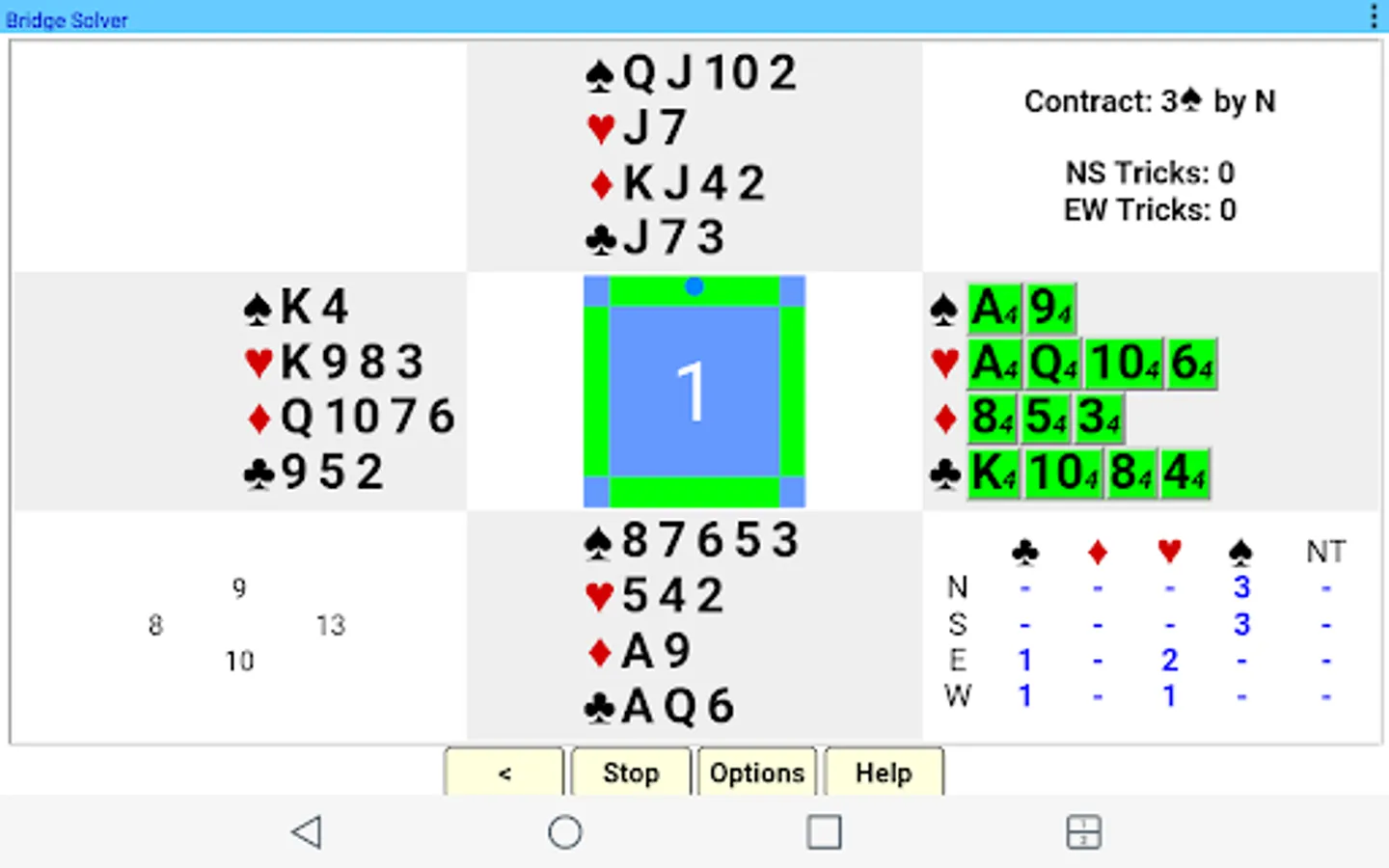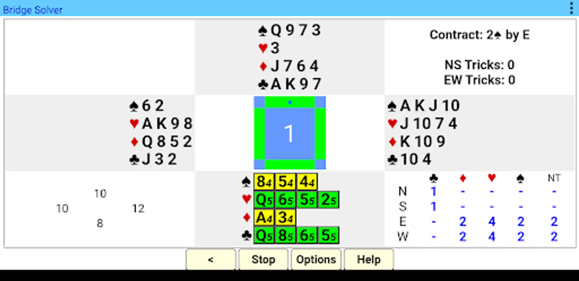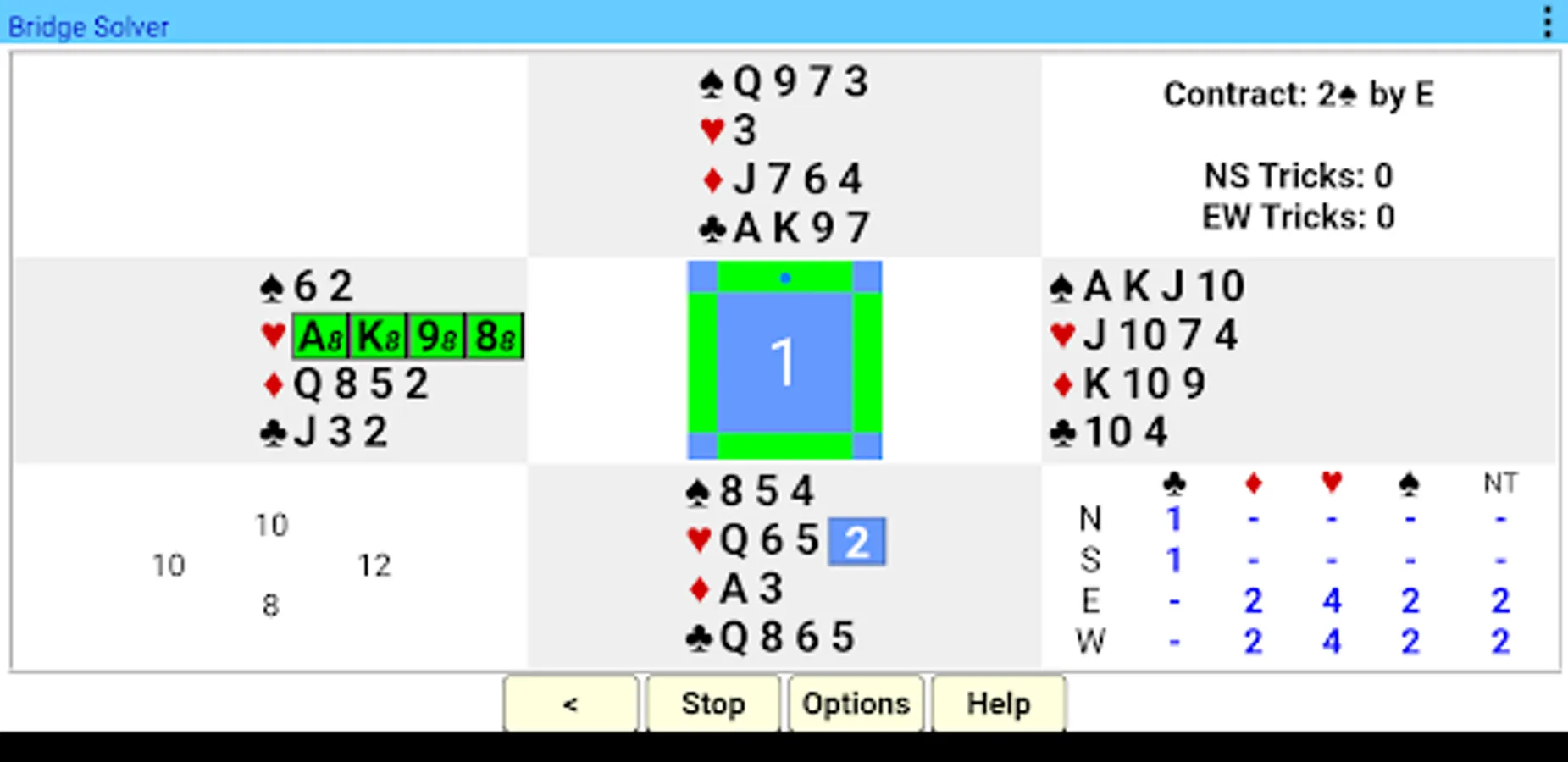 Interactive bridge hand analyser utilising Bo Haglund's well known double dummy solver module.