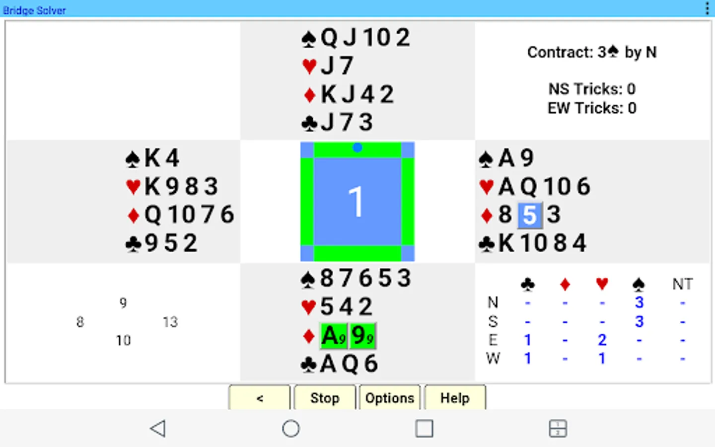 Tap on a link to a .PBN, .DLM, or BBO .LIN file in Bridge Solver's browser to download and import deals. Play the recorded contract(s) from a .LIN file with full double dummy analysis at each step, highlighting where the recorded line of play is non optimal. Follow the recorded line of play or investigate alternatives by choosing a different playable card at any point in the play.
