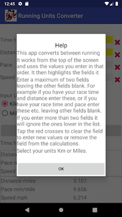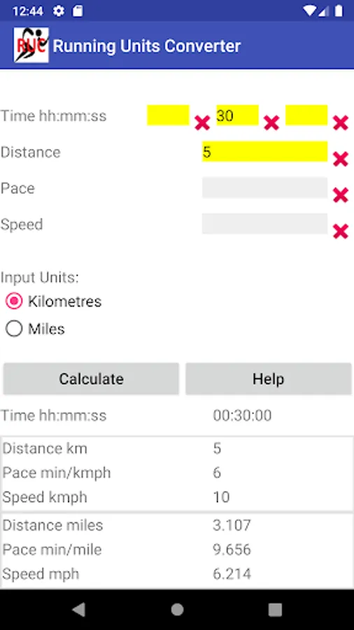Given two statistics about your run this app will give you details like Pace, Speed, Time, Distance, Miles and KM. Please contact me at the email below if you would like features added or you find a bug. I cannot find my old phone with the small screen so please let me know if it doesn't fit properly on small devices.