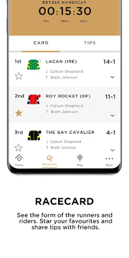 A racecard including all the information you need about the runners and riders, plus expert tips.