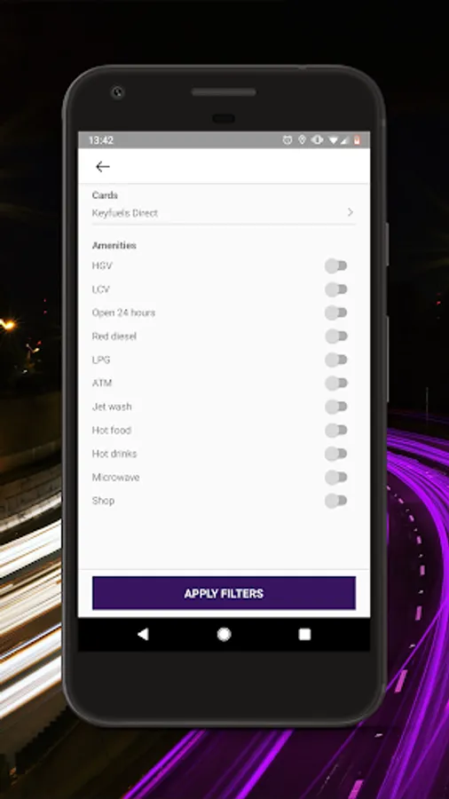 Keyfuels Sites enables you to select sites appropriate to your type of vehicle. There are three options:-