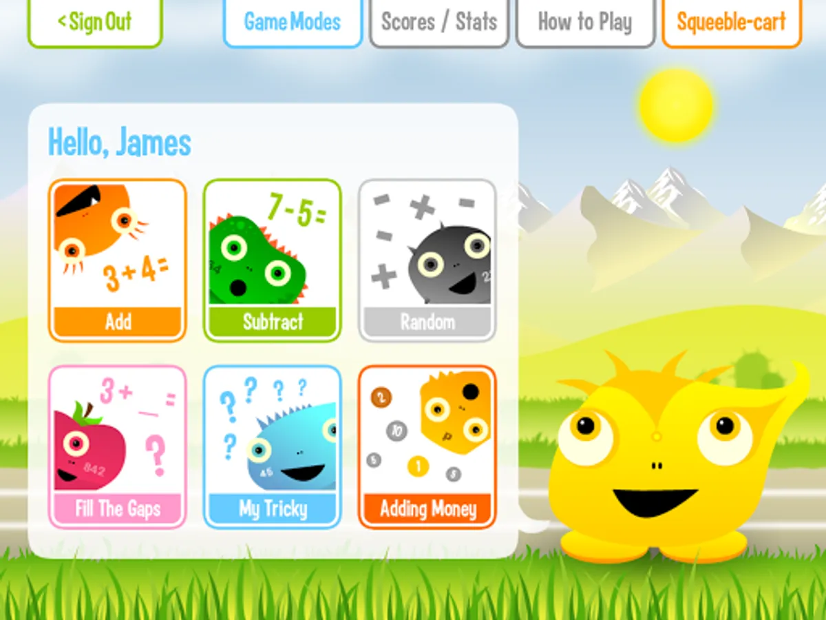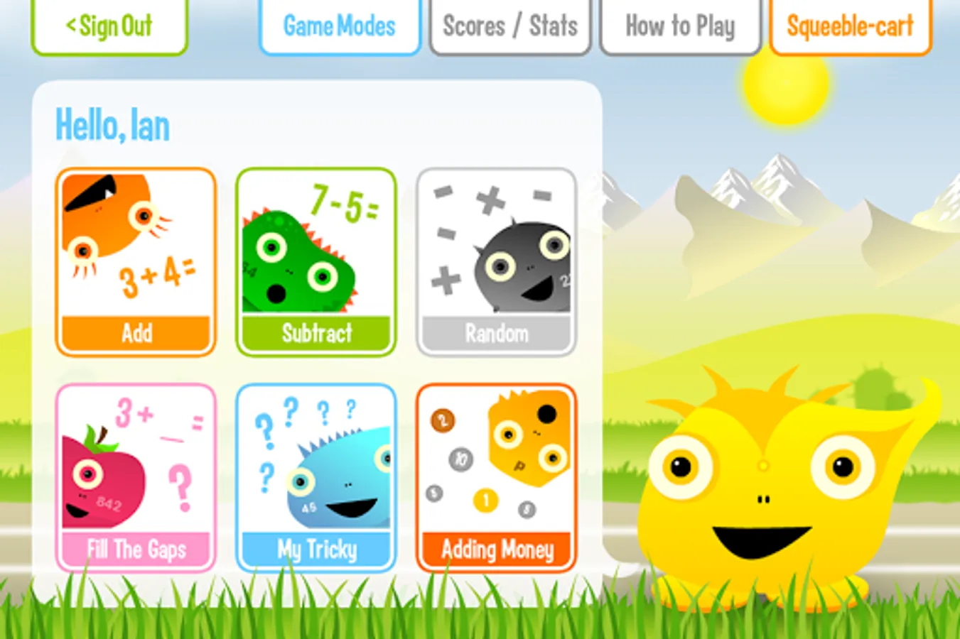By answering addition and subtraction questions across a variety of game modes and difficulty settings, you can free the 24 Squeebles from the clutches of the nasty Maths Monster as well as earn turns on a fun mini-game as a reward for doing well in your math tests.