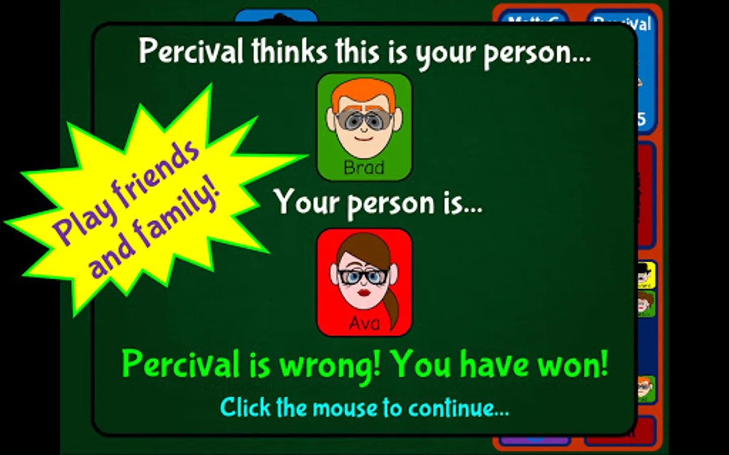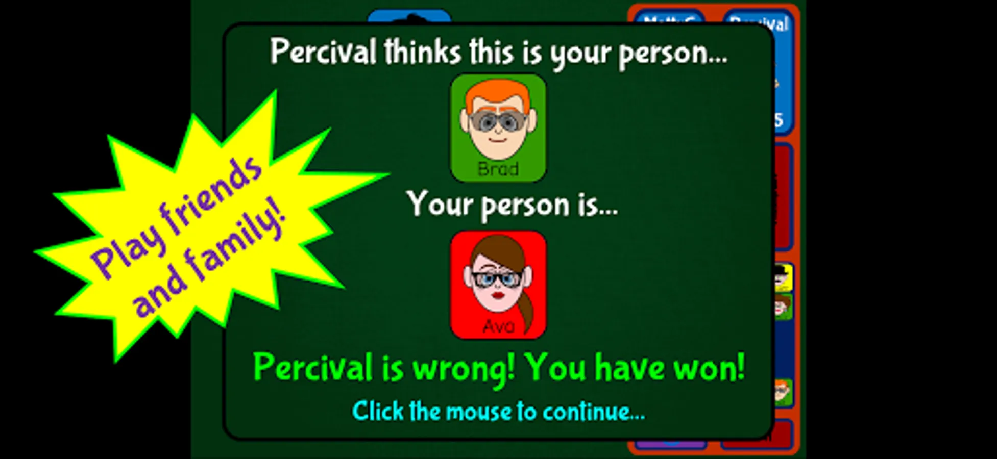 Looking to play by yourself? Perfect! Guess Which One has four different difficulty levels where you take on the computer’s own player - Professor Percival! Why not play “winner stays on” for the ultimate challenge?