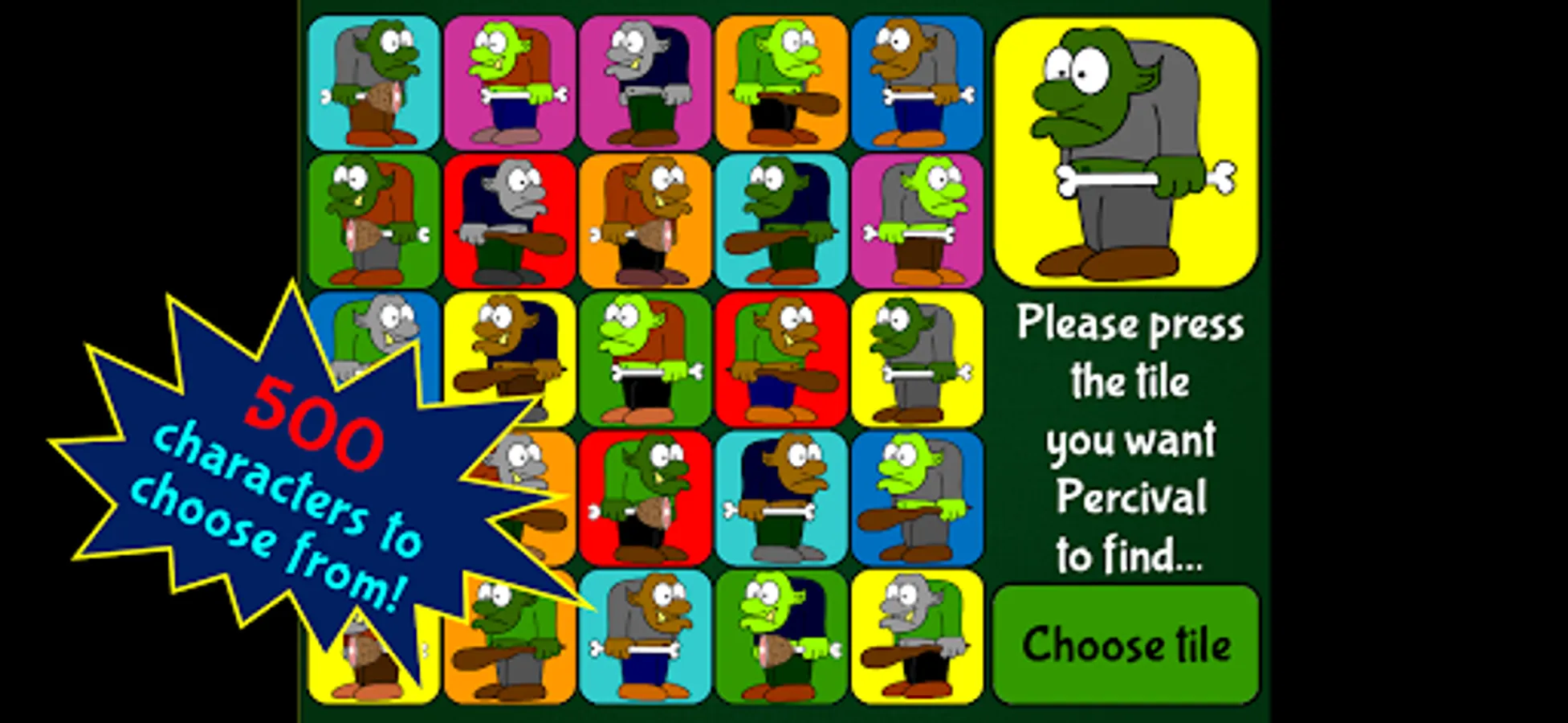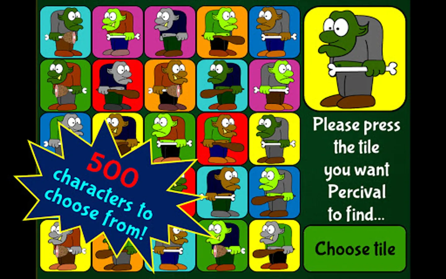 First, pick a tile for your opponent to find - there are 500 hundred tiles to pick from including people, dragons, cupcakes, hot air balloons and trolls… plus many more!
