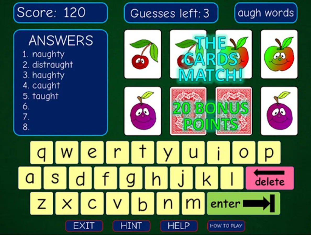 ...and many more! These are tricky spelling patterns that your child needs to see over and over again to remember them. What better way to do this than by playing games and having fun? The cartoon graphics and simple images are ideal for children of all ages and the games are simple enough for children of any age to enjoy.