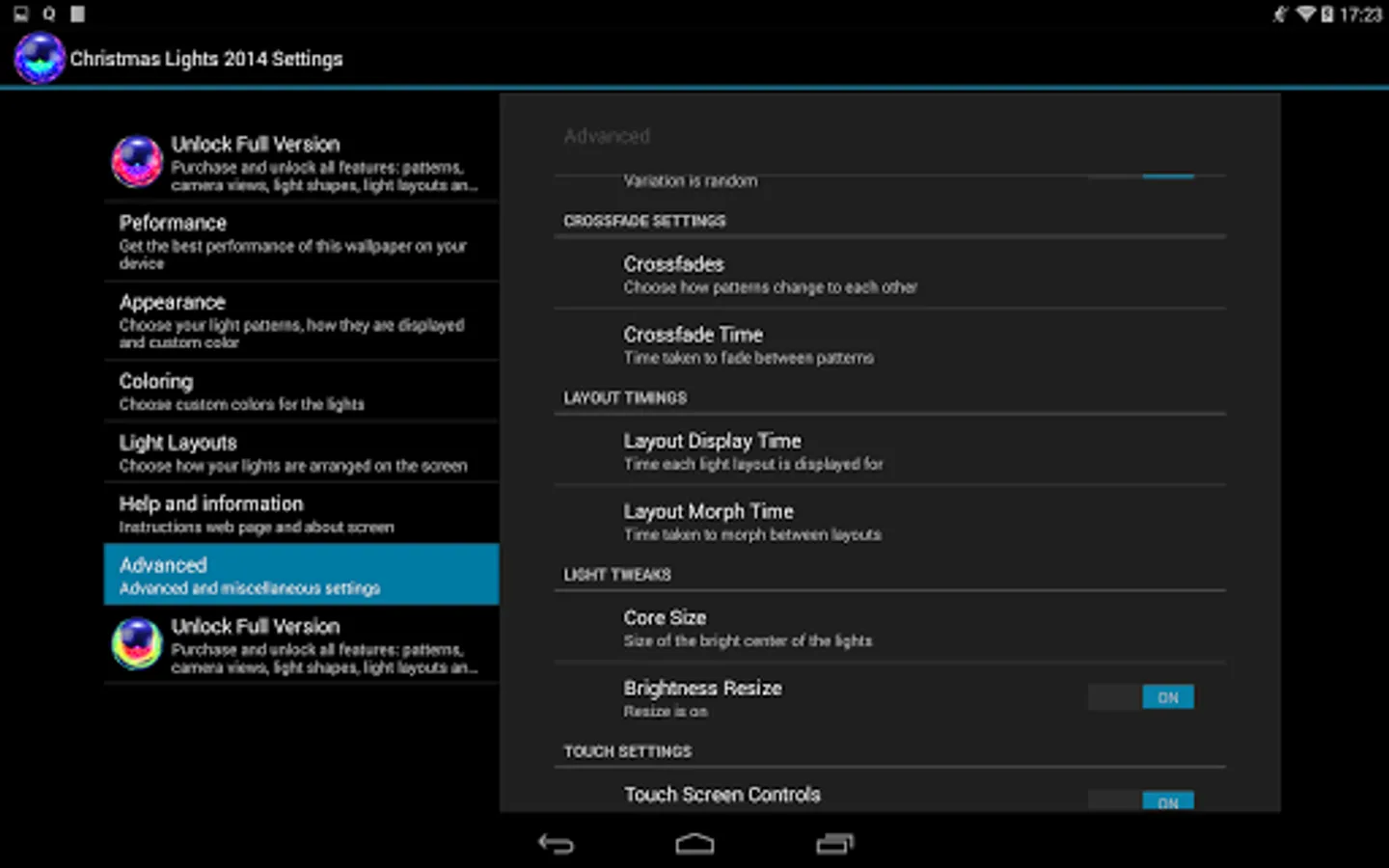 Unlike other Live Wallpapers on the market, every single light is individually controlled meaning your phone or tablet can display fully multi-colour Christmas light displays.