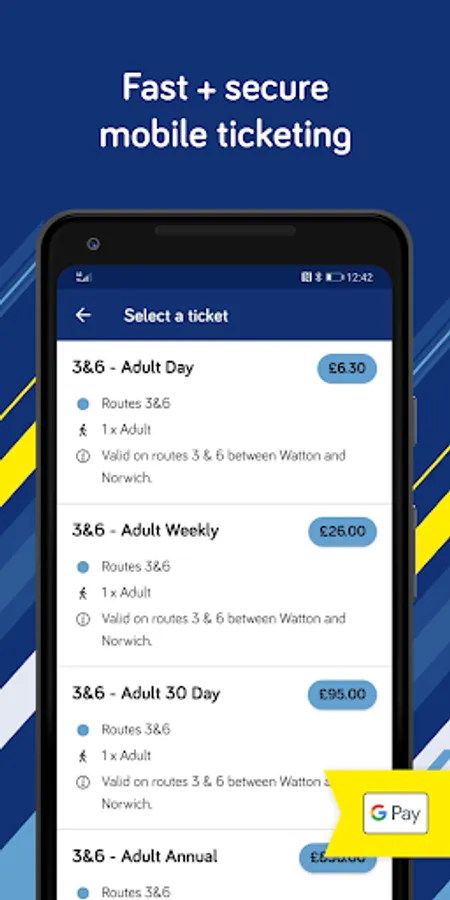 Mobile Tickets Purchase mobile tickets securely with a debit/credit card or with Google Pay and show the driver when boarding - no more searching for cash!