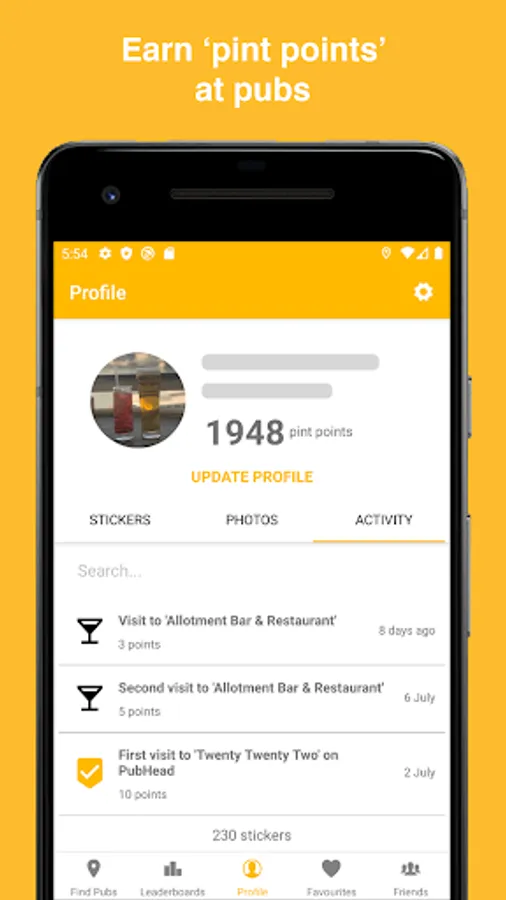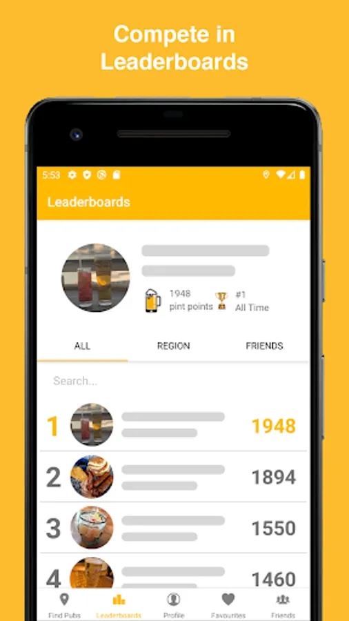 • Leaderboards allow you to compete with fellow PubHead’s in your local area, globally or even between your friend group!