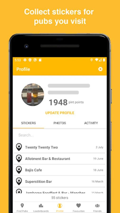 • Connect with friends to share pub stickers you've earned, discover new pubs together and compete for pint points!