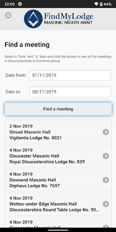 This app allows the user to find Lodge/Chapter meeting dates for Masonic lodges in the UK that are administered by UGLE as well as the lodges and chapters in UGLE Districts.