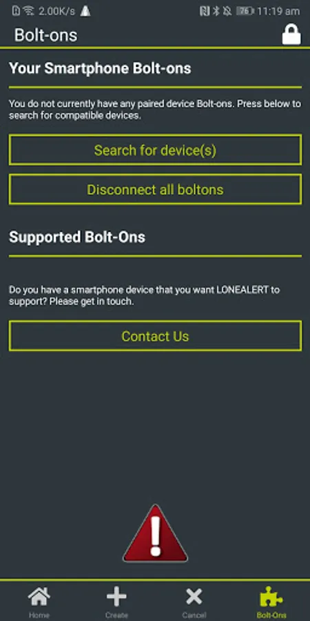 The app can be accesorised with the Bluetooth Switch Bolt-On. Users can call for help remotely by pressing the button and the Switch will use low power bluetooth technology to trigger the alert.