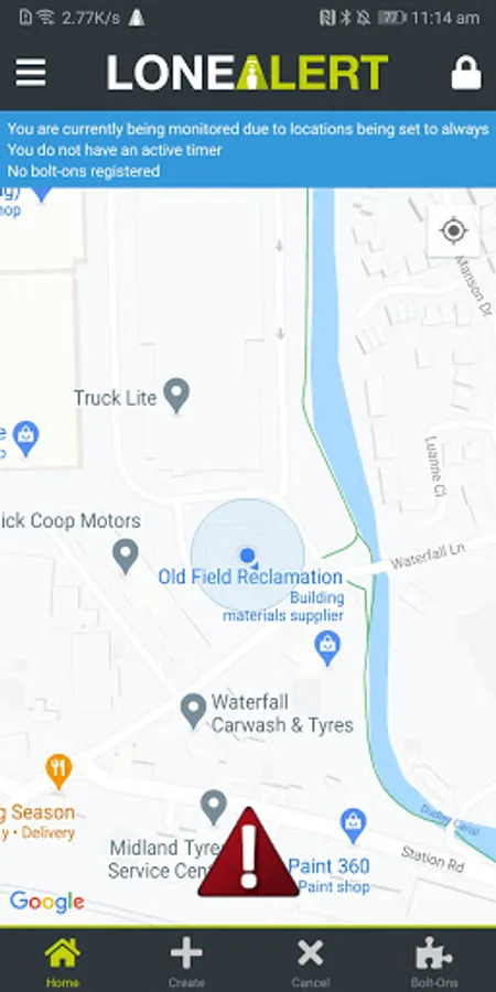 Users use the app to easily check-in whilst working alone or in dangerous situation. Location details and a personal message can be left, in addition to GPS positions to enable prompt assistance if required. A simple check-out procedure and user definable options allow the alert to be created.