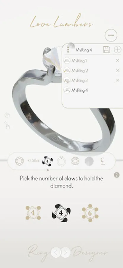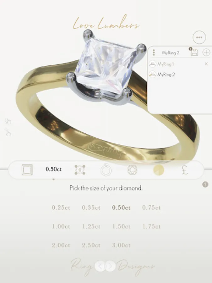 Thousands of combinations of diamond ring designs are available in this easy to use app. Everything you need to know is laid out simply and easily. You can store your favourite designs, come back later or just decide to buy there and then. Online transactions are safe and secure.