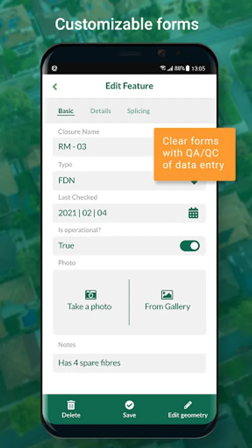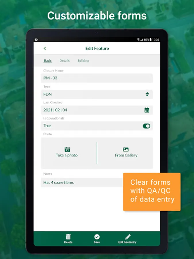 Simplify your field survey by capturing field data on your mobile or tablet. Create mobile forms with the fields you require and invite your survey teams to complete them on their phones or tablets. Captured data, along with their location can be surveyed offline, then synced back to the QGIS in seconds.