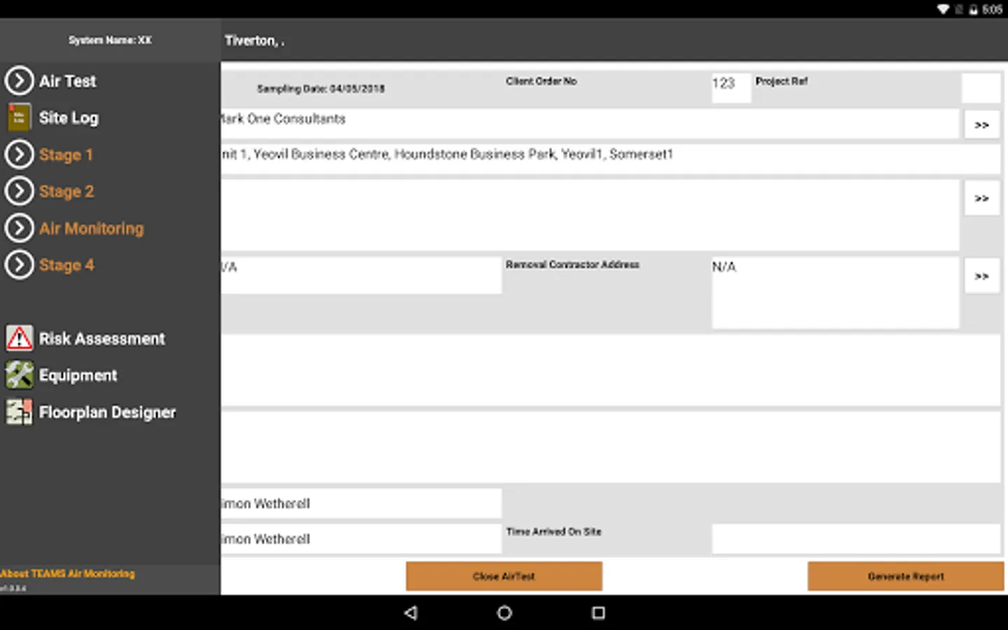 Along with a fully synchronised appointments diary, the TEAMS air monitoring app is designed to collection and collate into PDF the following air test works onsite;