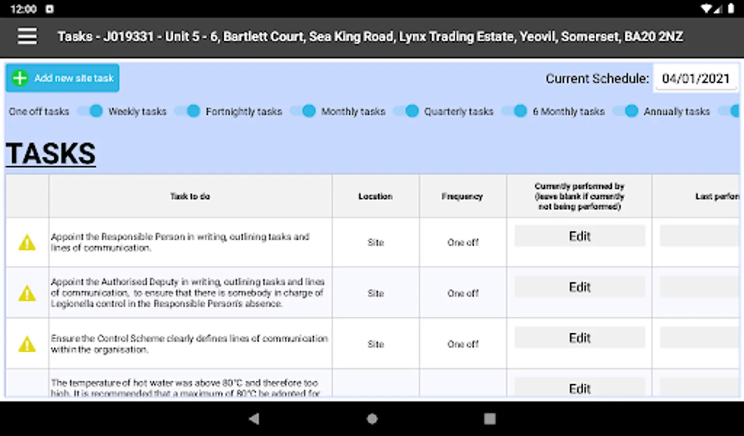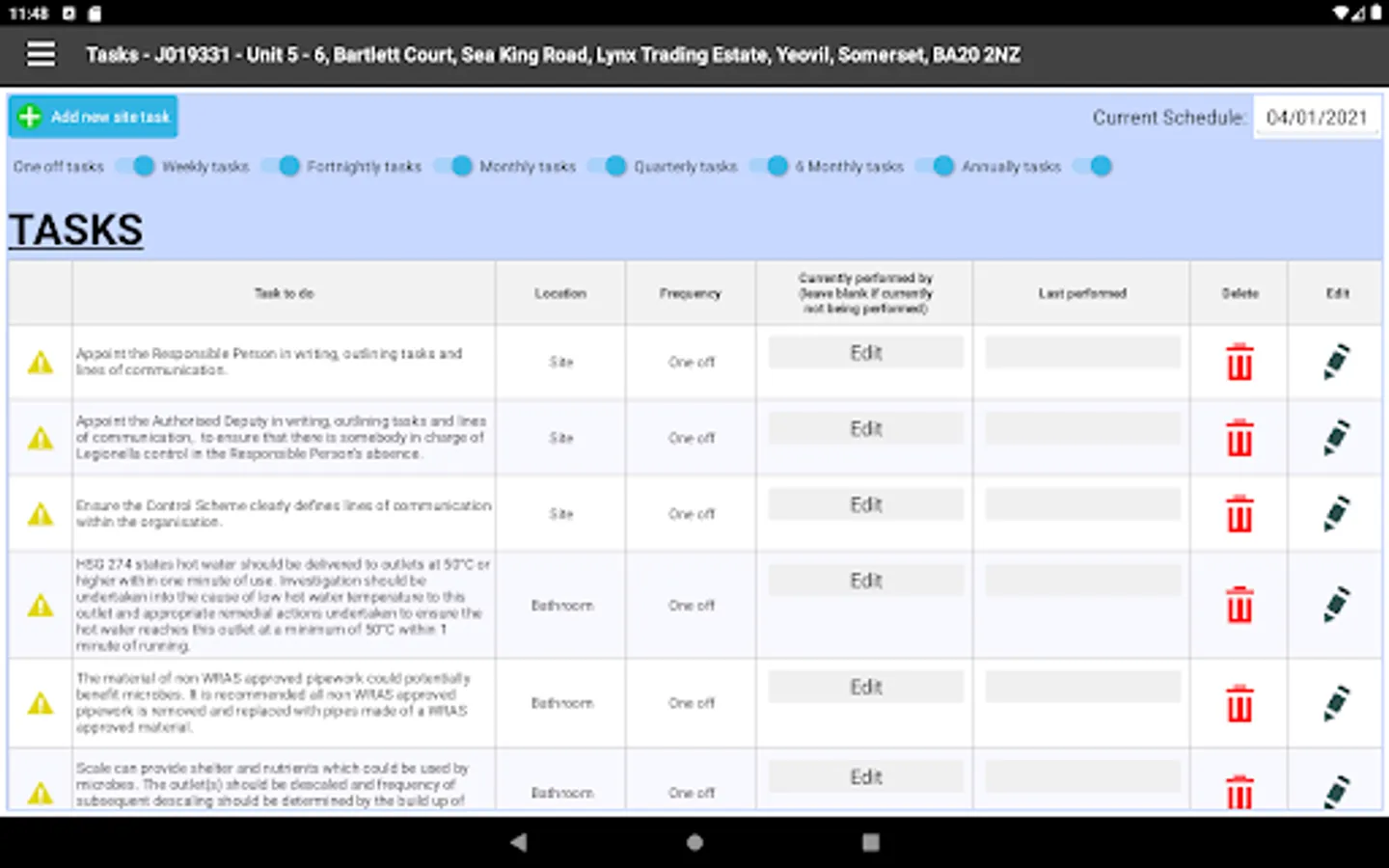 - Frequency of the action (one-off, weekly, monthly, 6-monthly, annually etc)