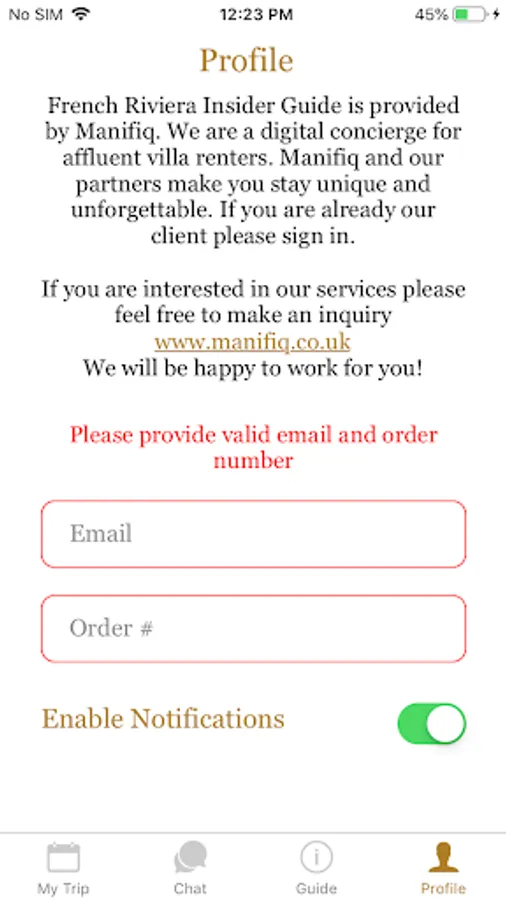 In the app you can also see the experiences and activities you booked with Manifiq, and chat with our concierge services should you need any help or advice.