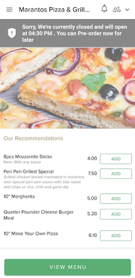 Here at Maranto's Pizza & Grill House we are constantly striving to improve our service and quality in order to give our customers the very best experience. As a result, we are finally proud to unveil and introduce our latest improvement, our new online ordering app! You can now relax at home and order your favourite, freshly prepared meals from Maranto's Pizza & Grill House, online. You can even pay online!