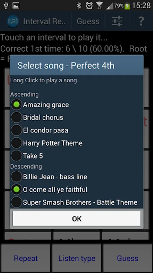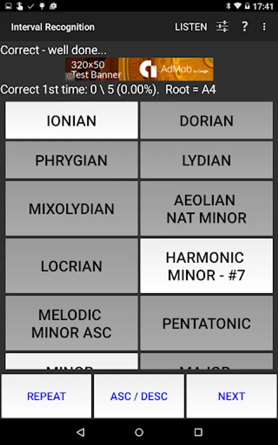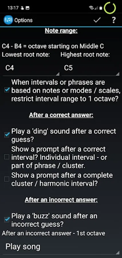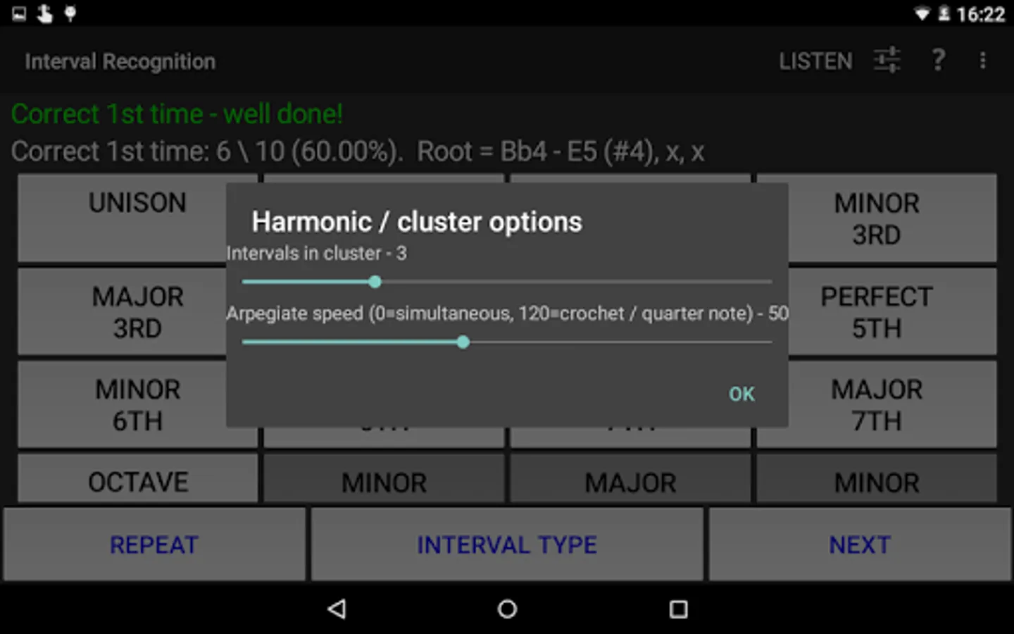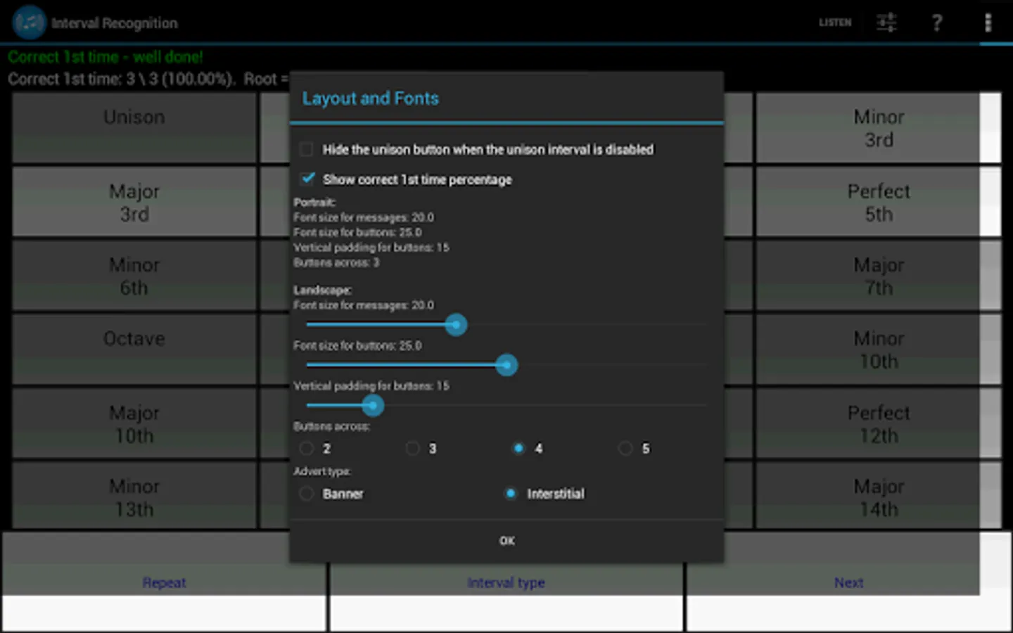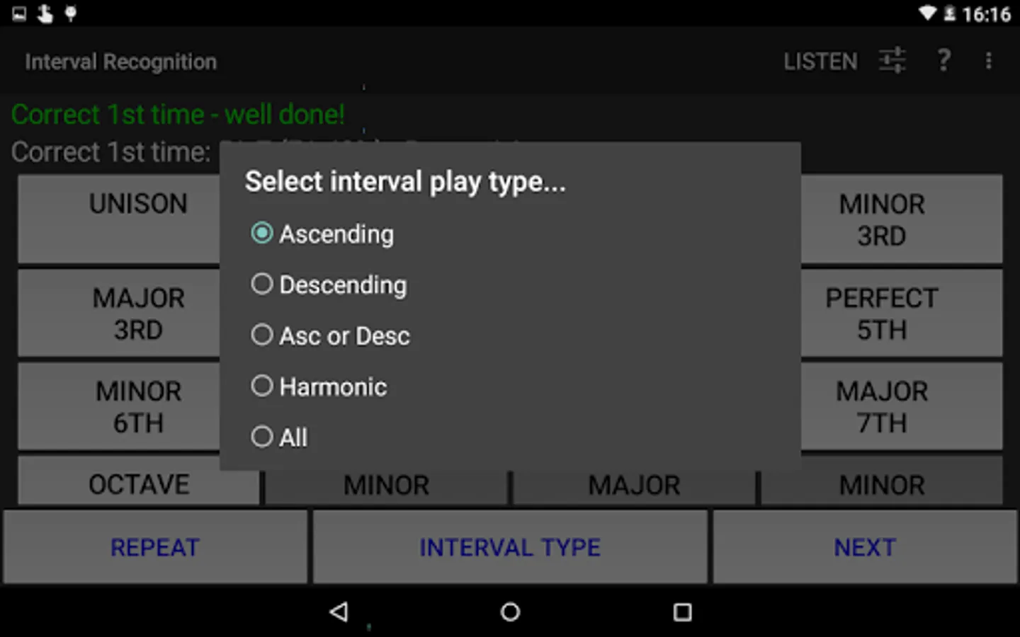 Continuous Play - repeat question a set number of times then display the answer before moving on to the next one. Optional text to speech for announcing the root note and answers. Basic speech recognition for entirely hands free use.