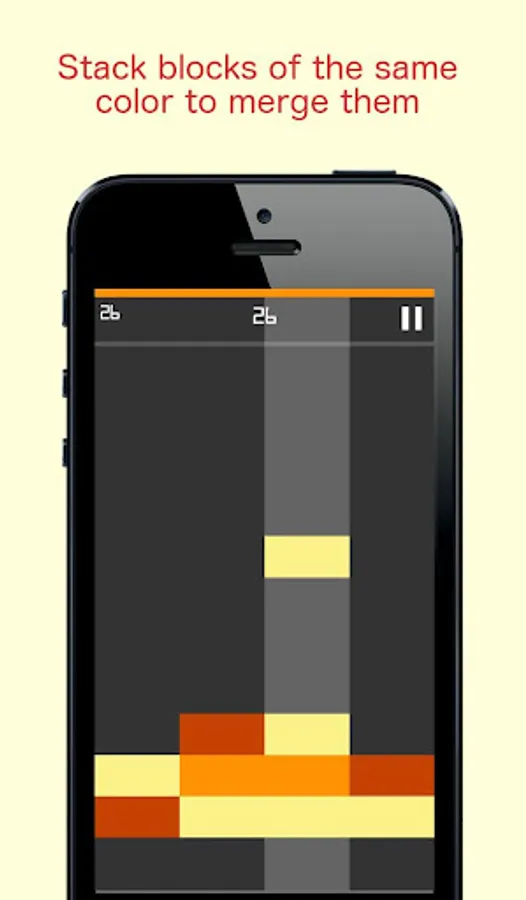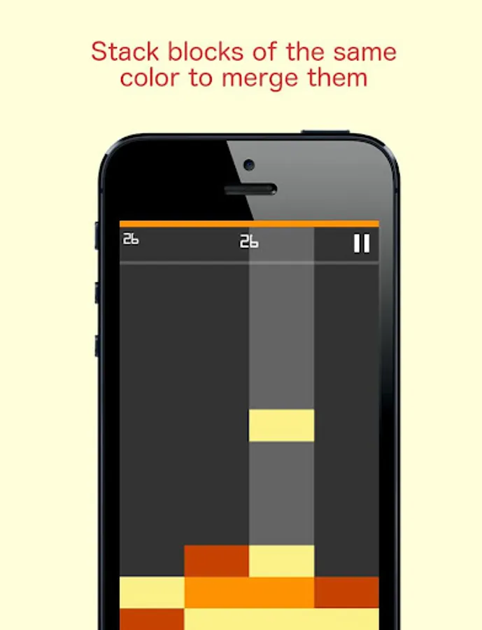 - If a block falls into another block of the same color it will merge creating a darker block.