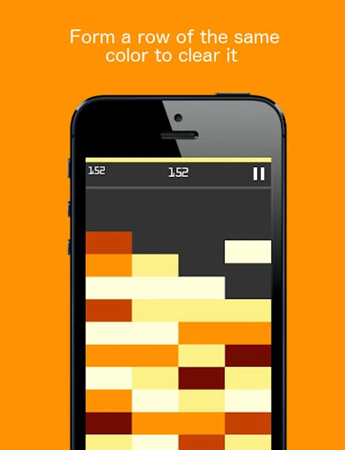 - If a row of blocks of the same color is formed, it will be cleared.