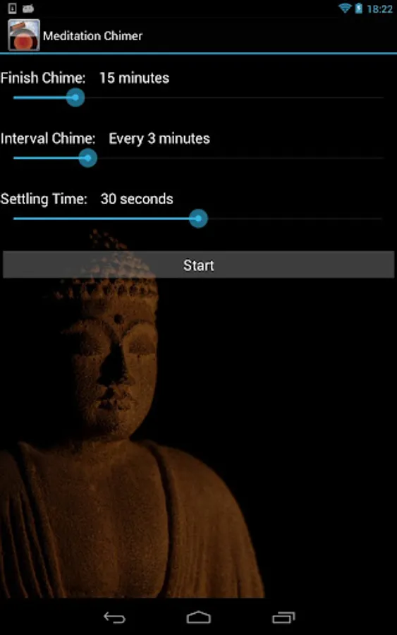 Meditation Chimer is a simple meditation timer. It will sound chimes for the start and end of your meditation, and optionally chime at regular intervals during your meditation.