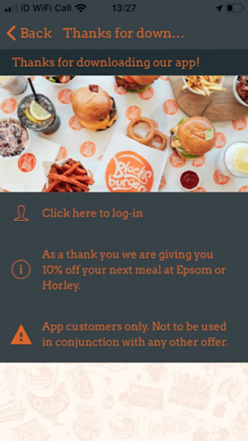 Welcome to the Blacks Burgers customer App, download our App to get access to the latest Promotions, Special Offers, Scratch Cards, Loyalty Cards, Online Ordering and much much more. Make sure you create an account and fill in the Birthday Club form and we'll send you something on your big day.