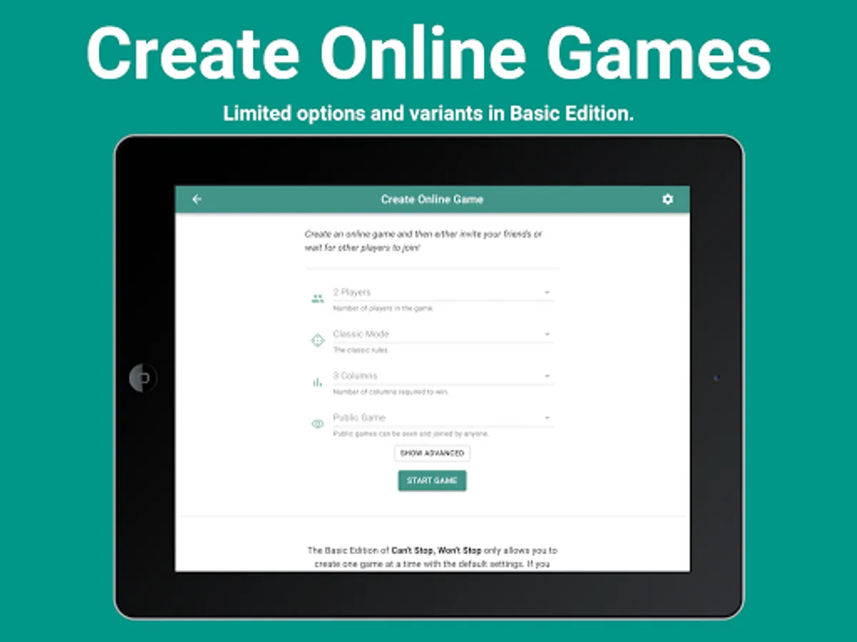 Fully-featured popular dice game based on "Can't Stop" board game: