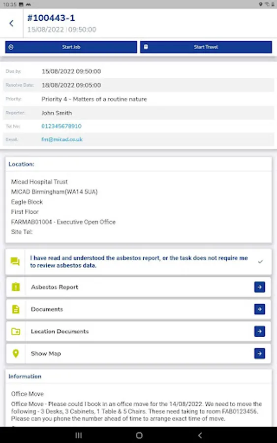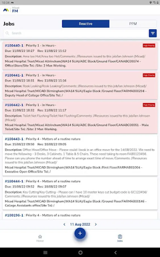 The Micad FM app is designed to replace the Micad HelpDesk Advanced app. Users are now presented with a scrollable jobs list displaying a lot more information, including a full location description. The jobs list is now fully customisable, allowing sorting/filtering. There is also an option to search for keywords.