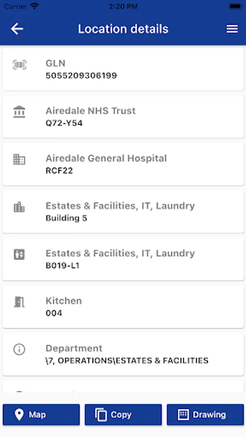 The Micad GLN Scanner App is an implementation aid for NHS Trusts committed to GS1 rollout. The App is specifically designed to speed up and improve reliability of the labelling process for GLN barcodes fixed to walls and doors. By scanning the GS1 GLN barcode, the App lists the room’s physical address together with any related meta and ‘functional’ occupancy data. The CAD floor plan provides the confirmation needed to be assured that correct room has been chosen for libelling. The room highlighted in red automatically at the request of the GLN lookup.