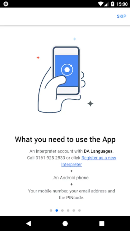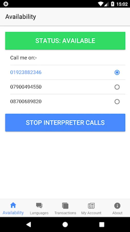 The DALInterpreter App allows Interpreters to manage their availability from their mobile. The App also allows interpreters to view their account details and their earnings for the last month.