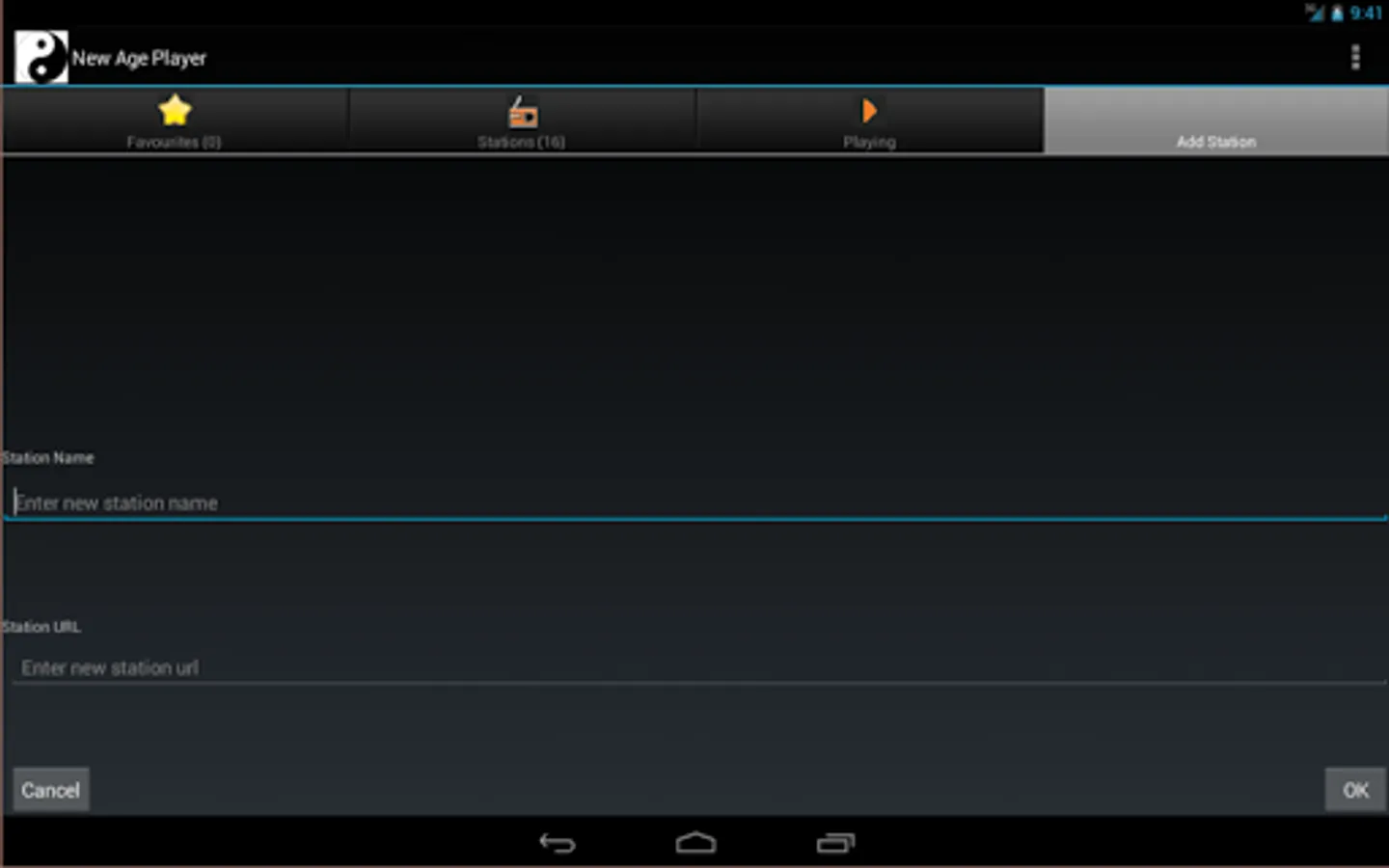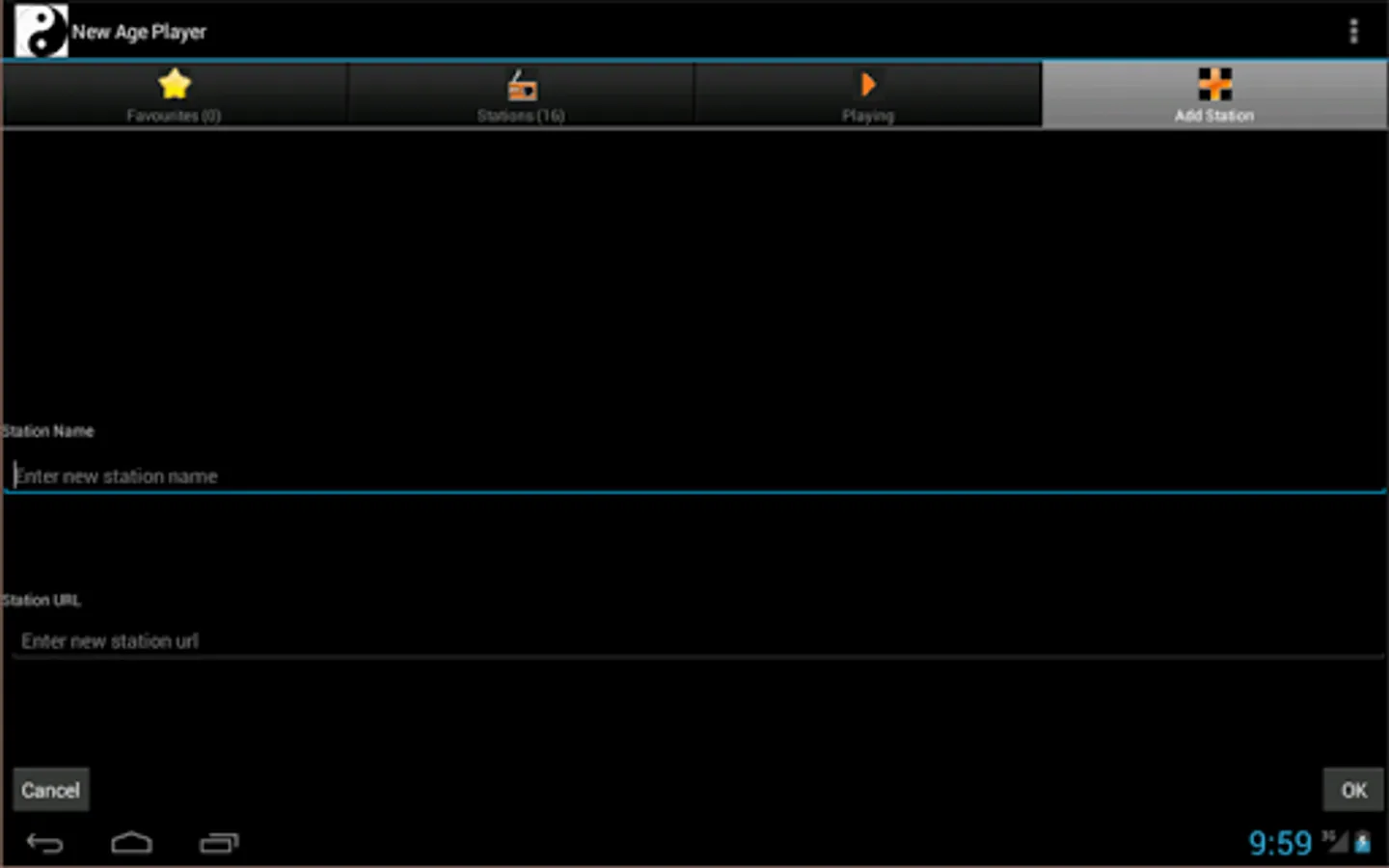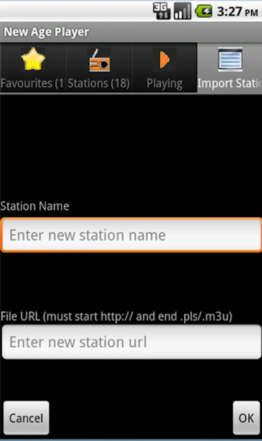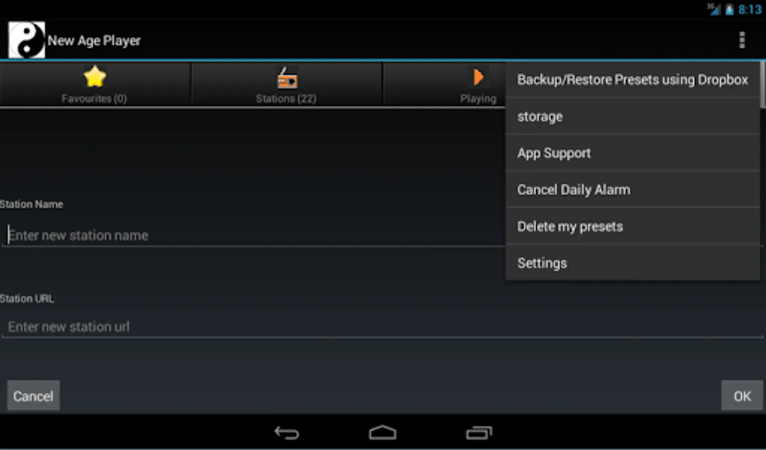 Import/Export stations from/to another device (see support site to see which platforms are supported) via Dropbox and the New Age Player App for that platform.