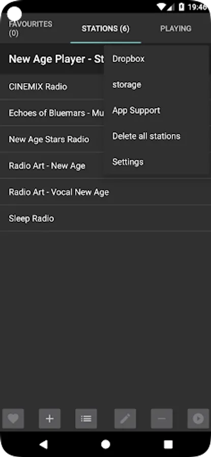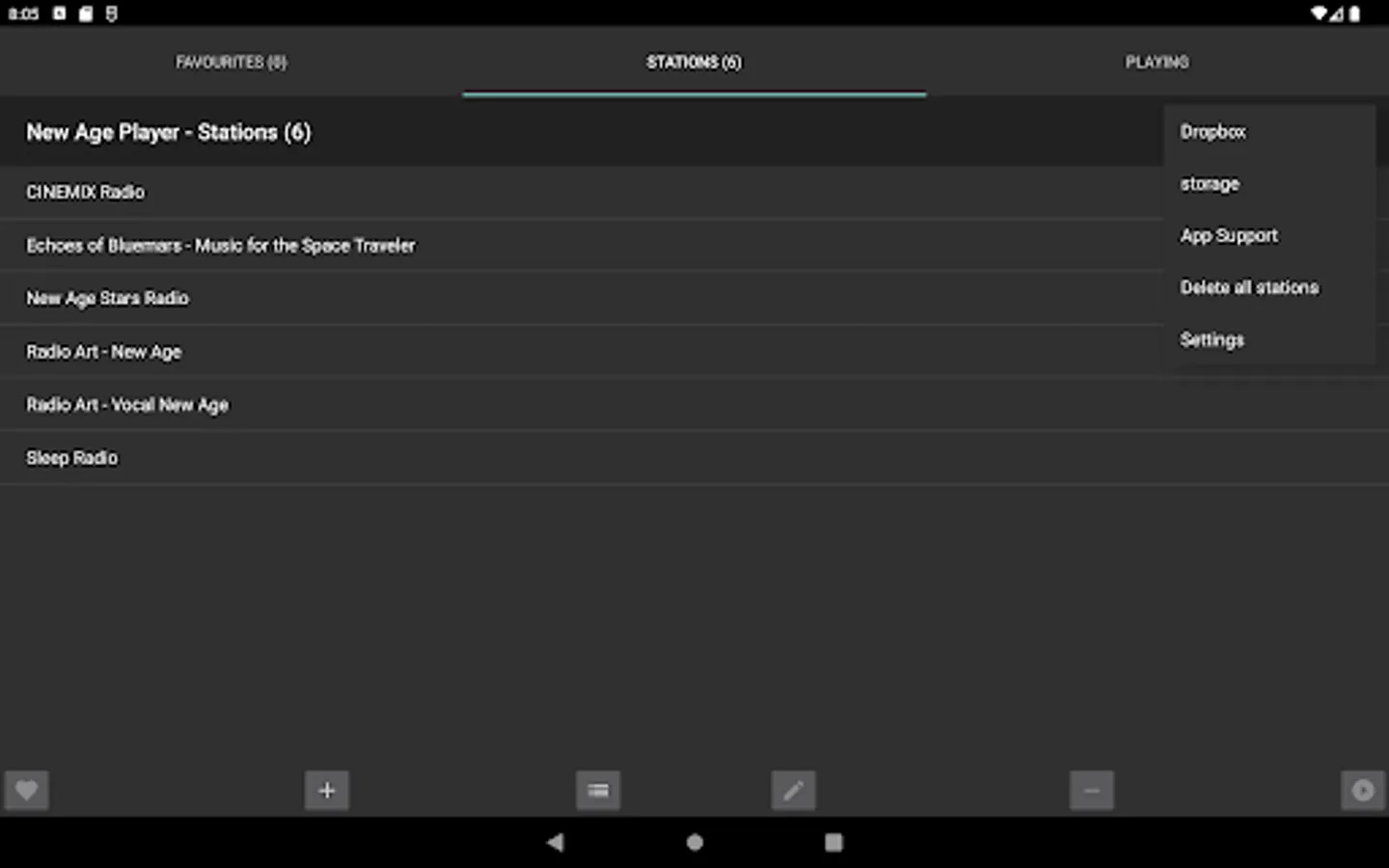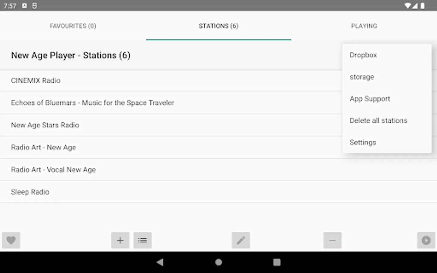Import/Export stations from/to another device (see support site to see which platforms are supported) via Dropbox and the New Age Player App for that platform.